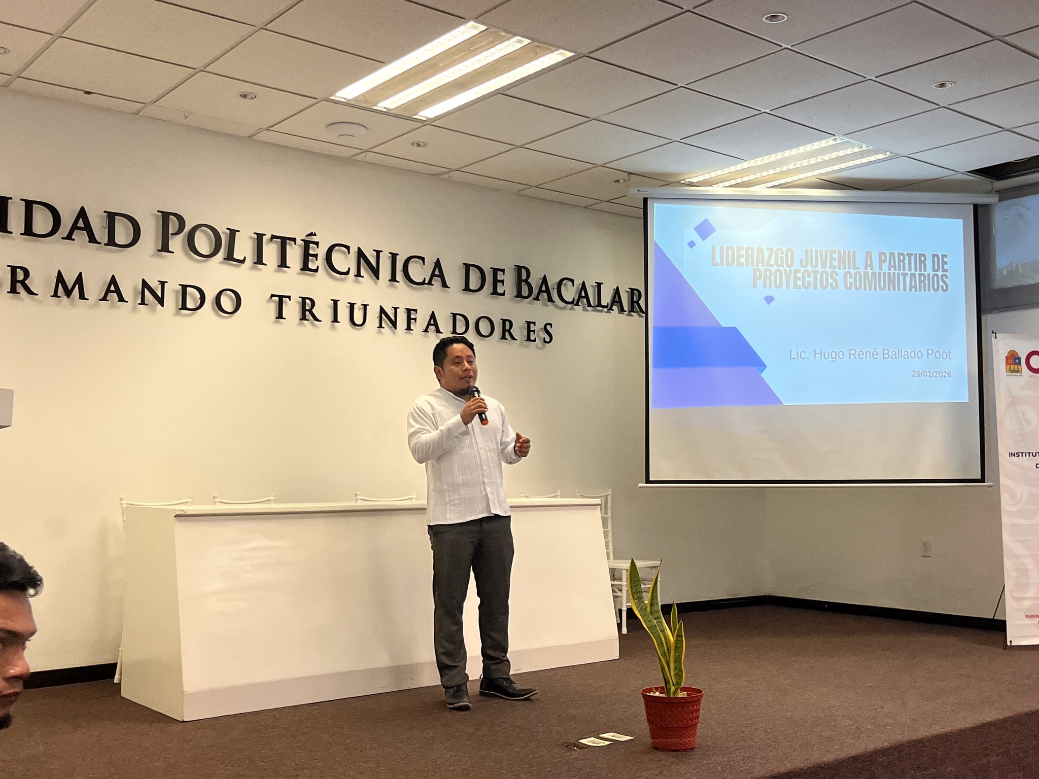 ​La ponencia fue impartida por el Lic. Hugo René Ballado Poot, Licenciado en Lenguas y Cultura y ganador del Premio Estatal de la Juventud. Durante la sesión, compartió su experiencia en proyectos sociales para que las juventudes refuercen su visión como líderes, identifiquen el valor de la participación y su capacidad para generar cambios positivos desde su entorno.